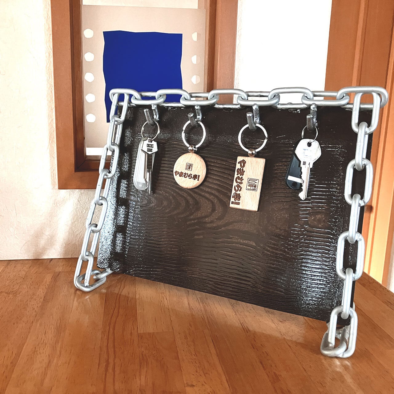 鎖を加工したキースタンド(キーハンガー)です。